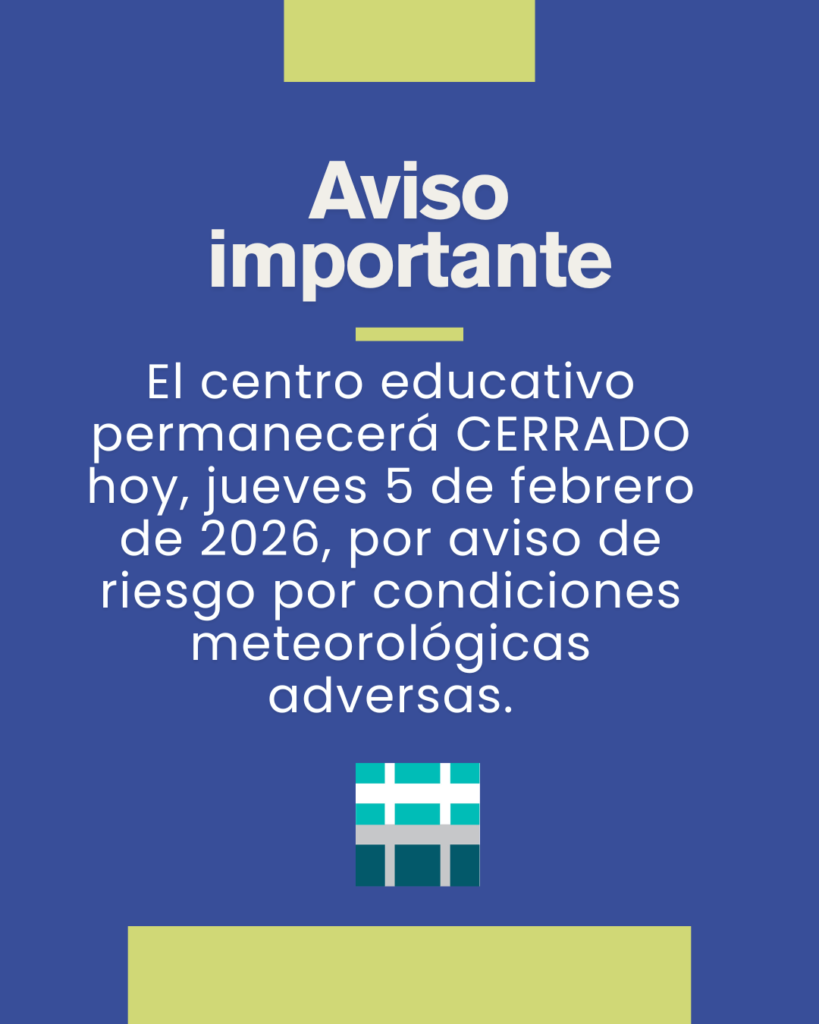 Este jueves 5 de febrero de 2026 se mantiene suspendida la actividad lectiva presencial en el IES por fenómenos meteorológicos adversos.