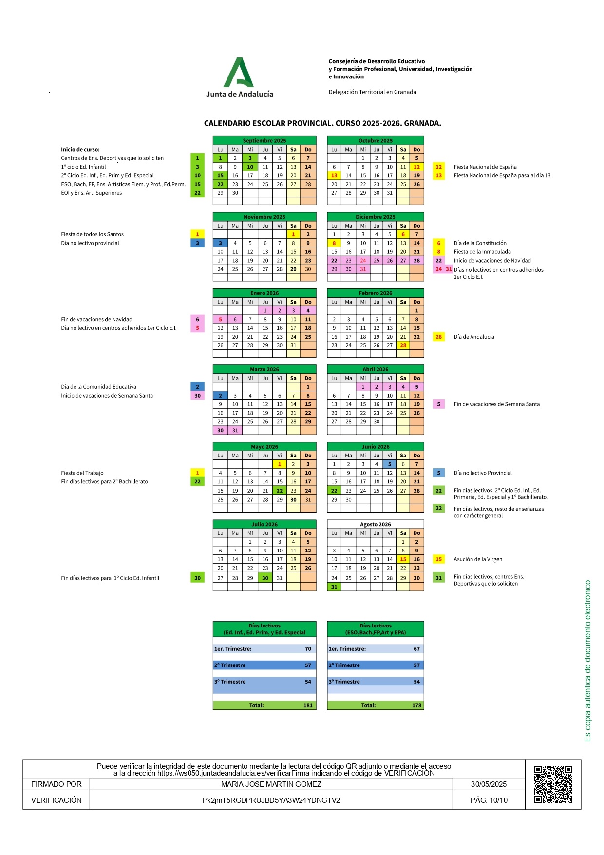 Calendario escolar 2025/2026