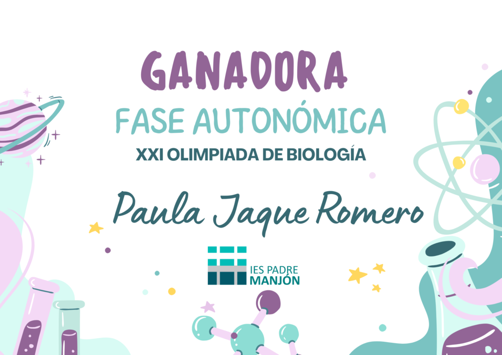 Nuestra alumna de 2º del Programa del Diploma del Bachillerato Internacional Paula Jaque Romero ha resultado ganadora de la fase autonómica de la XXI Olimpiada de Biología celebrada en la Facultad de Ciencias de nuestra ciudad y cuya final tendrá lugar en Santander en el mes de marzo: ¡estamos muy orgullosos/as de ella y le deseamos mucha suerte!
